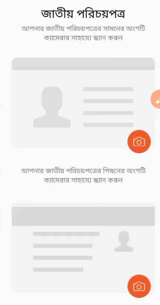 ধাপ ৬: নাম্বারে ওটিপি আসলে সেটি বসিয়ে দেওয়ার পর আপনার সামনে এমন একটি পেজ ওপেন হবে এখানে আপনার জাতীয় পরিচয় পত্র কিংবা এনআইডি কার্ডের সামনে এবং পেছনের অংশটির ছবি তুলে সাবমিট করতে হবে।